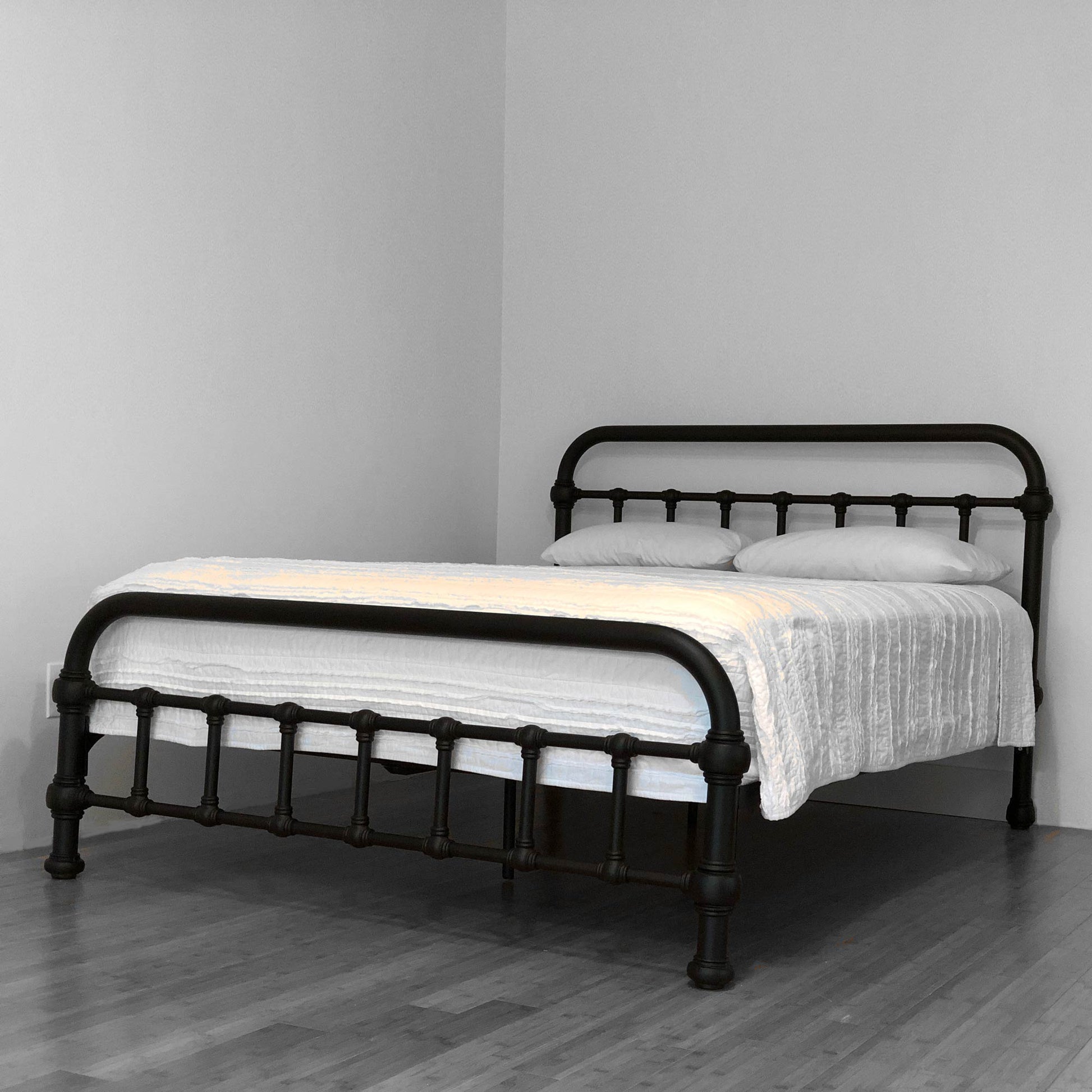 For an updated iron platform frame with wood slats and a lower headboard and footboard, 20th c. Americana Low Profile Iron Platform Bed is made in the USA and has the same castings and general iron bed design as Heiressy’s original 20th c Iron Bed. Interior designers love the transitional style of a modern iron platform bed on a timeless cast iron headboard and footboard. Every casting is hand-poured and the 20th c. Americana Iron Platform Bed is authentic. Luxury Interior Designer quality with a timeless heirloom iron bed design and a lifetime warranty. Featuring a strong, welded frame and solid wooden slats upholstered on top, this stunning Heiressy low-iron platform bed will be the perfect centerpiece of any bedroom. The iron platform bed frame looks great in the traditional Matte Black or choose from dozens of iron finish color options.